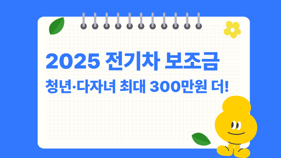 2025년 전기차 보조금, 청년·다자녀 가구라면 실제 최대 300만원** 추가 지원이 가능해집니다.